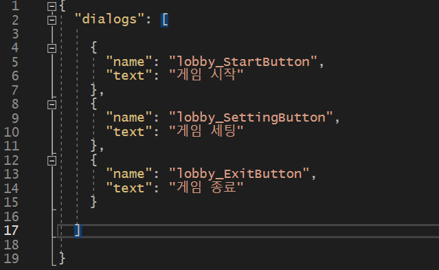 우선 각 버튼에 쓰일 내용과 이름을 json에 구조로 만들어준다.