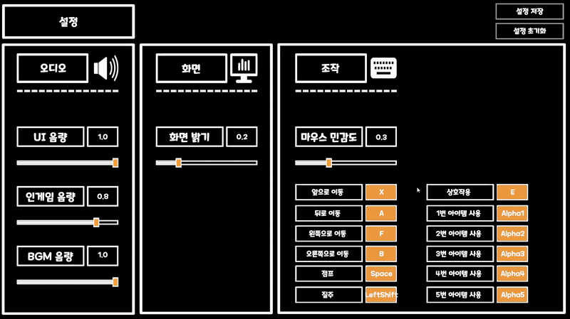 이제 저장과 되돌리기 자체는 이전 작업에서 완료했기 때문에 세팅 UI는 여기서 끝이다.